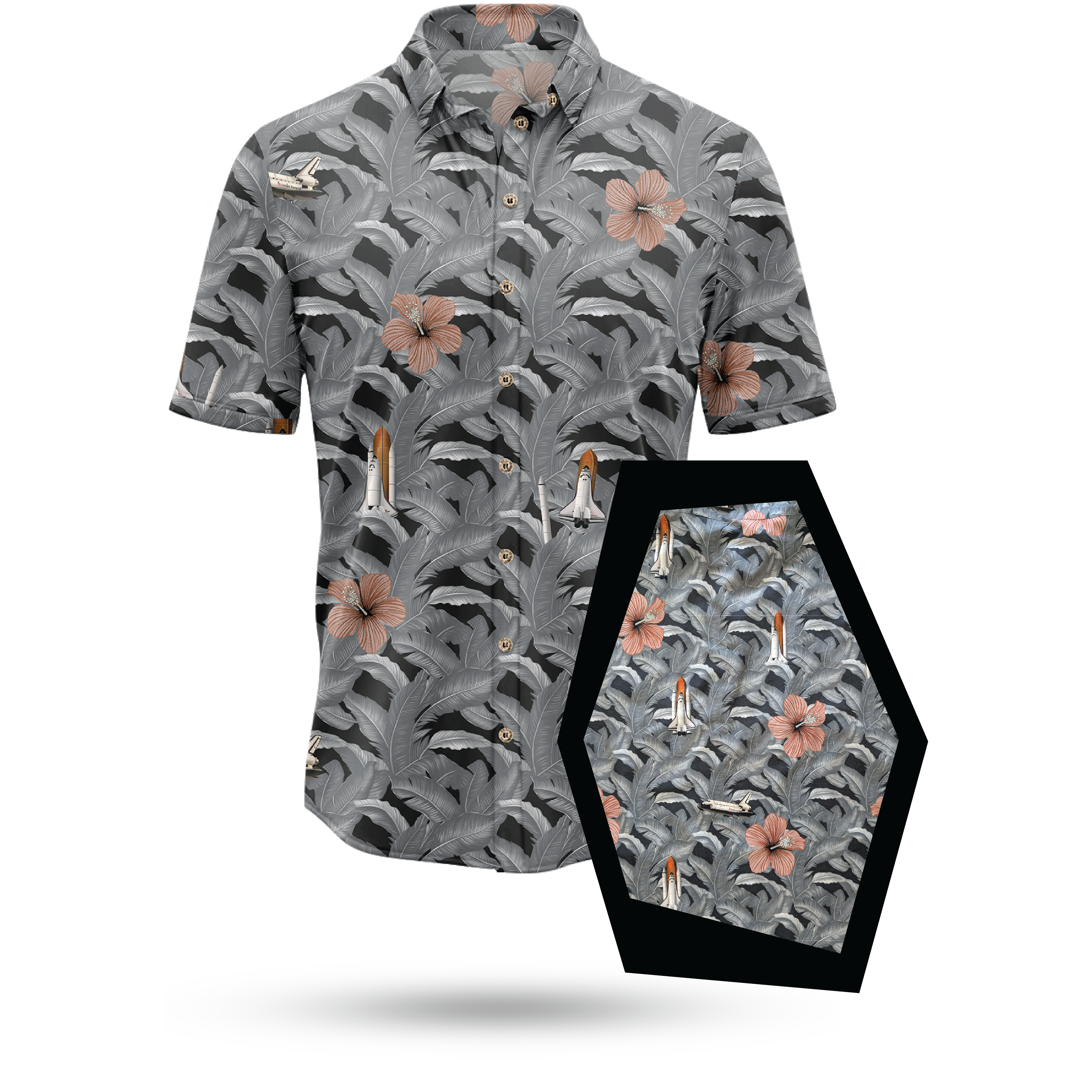 The Space Shuttle Hawaiian Shirt by Cape Kennedy Clothing honors NASA’s reusable Orbiter era—responsible for satellite deployment, Hubble servicing, and ISS construction. Featuring technical Shuttle motifs and relaxed aloha fit, it’s a refined tribute to 30 years of missions launched from Cape Canaveral.