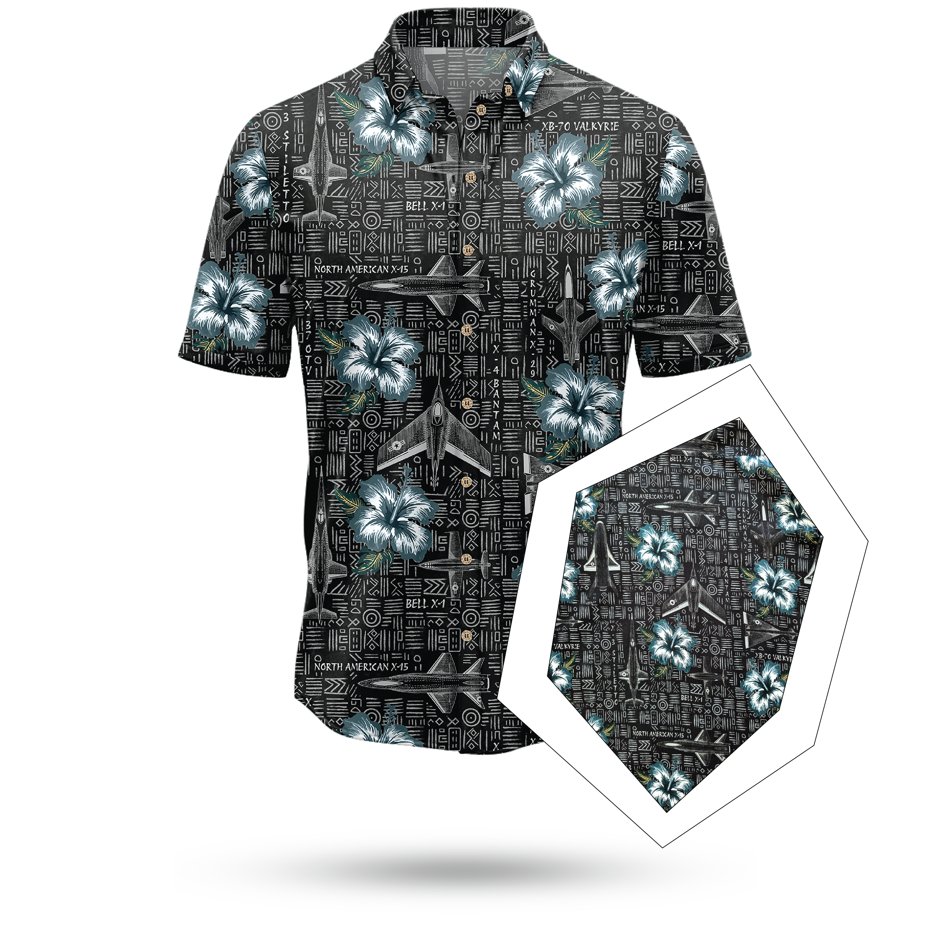 The X-Planes: Experimental Flight Hawaiian Shirt by Cape Kennedy Clothing features the X-1, X-4, X-29, X-70B, and Polecat aircraft—each a milestone in aerodynamic research. Designed in a relaxed aloha fit, it honors the test pilots and engineers who advanced aviation through risk and experiment.